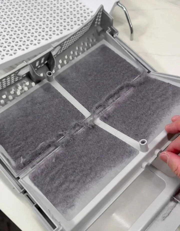 假如你用烘干机的话,那将更会愈加震悚,它的过滤网上过不了多久就铺满了毛絮,让东说念主看得十分不得志。