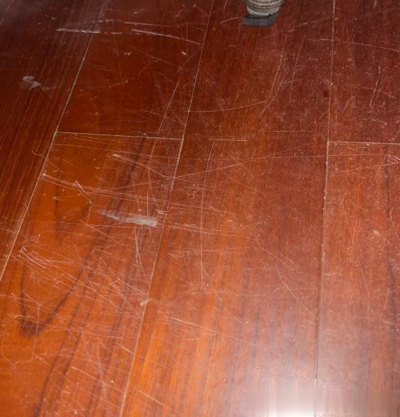 现时我家纯实木地板,依然伤疤累累了。